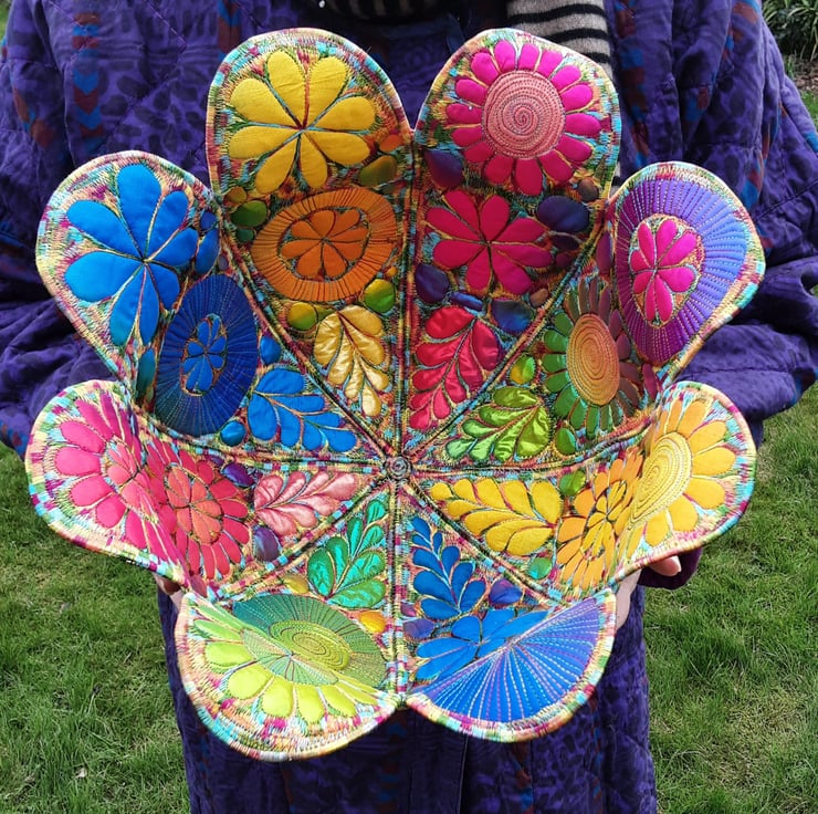 Made from hand dyed Egyptian cottons and silks using the free machine embroidery style of sewing.