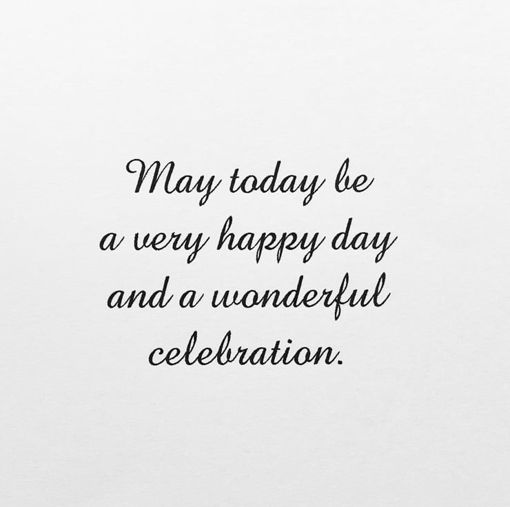 The message inside reads "May today be a very happy day and a wonderful celebration" in purple print
