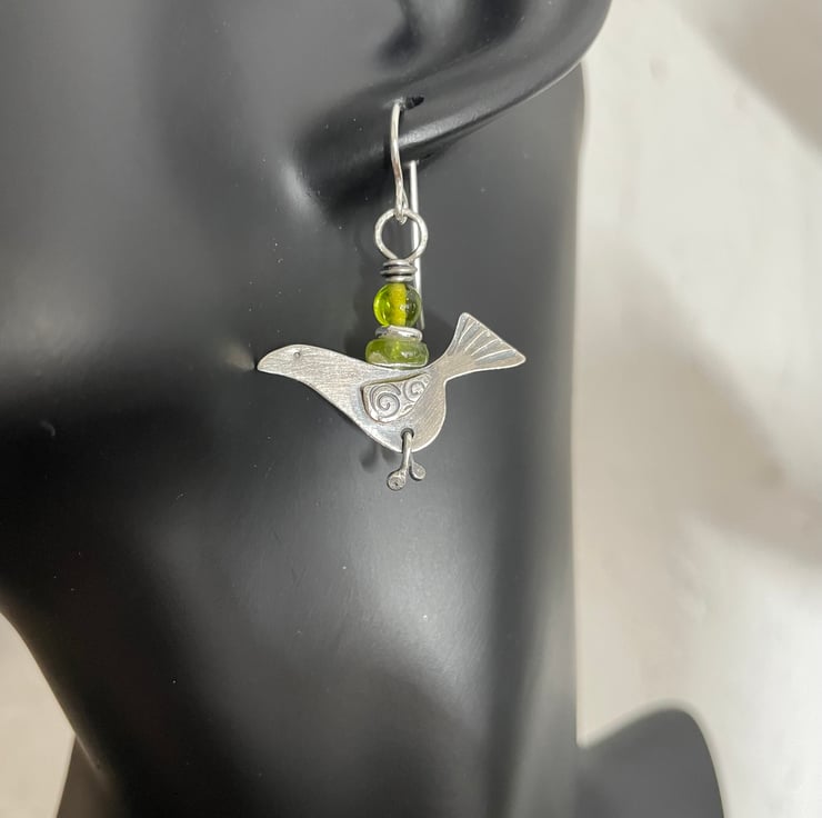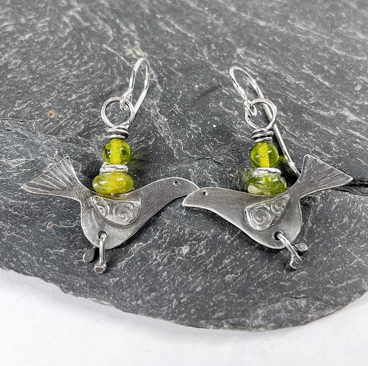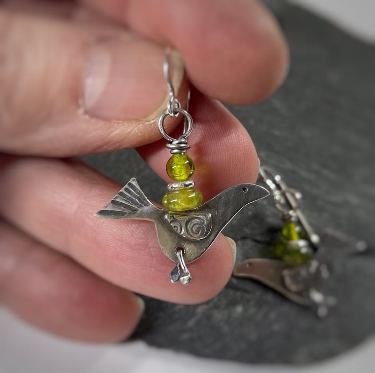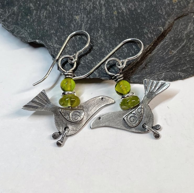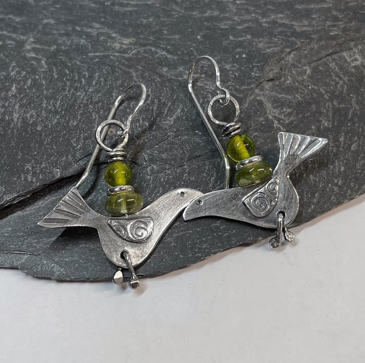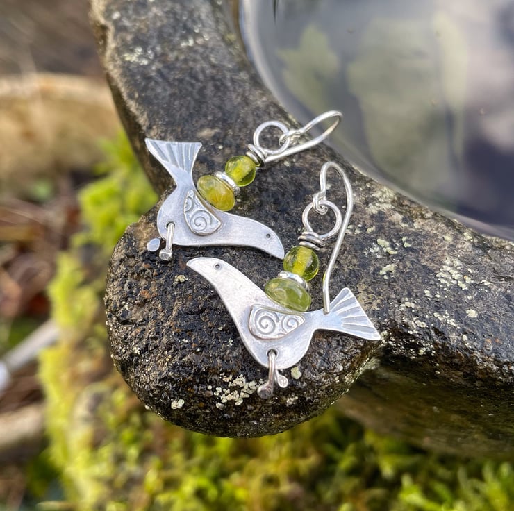 I have made some small silver birds with swirly wings and moving legs. The silver has been oxidised dark in the recesses .