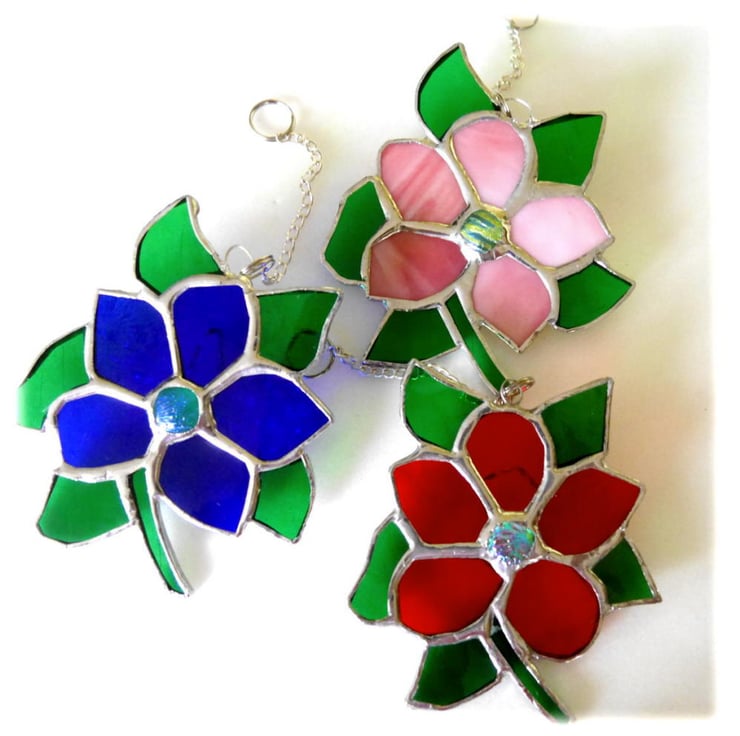 This is a stained glass suncatcher made using the Tiffany copper foil technique.