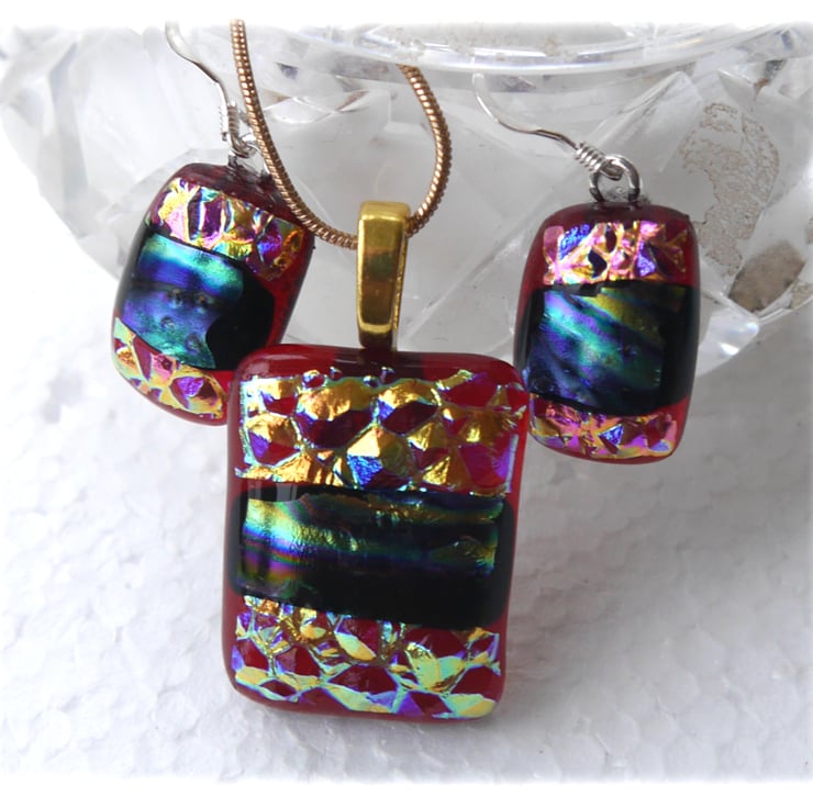 The dichroic glass cabochons for the pendant, matching earrings were handmade, by me with love.