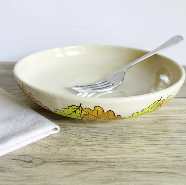 These pasta bowls are hand-thrown on a wheel using earthstone clay and glazes fired in an electric kiln.