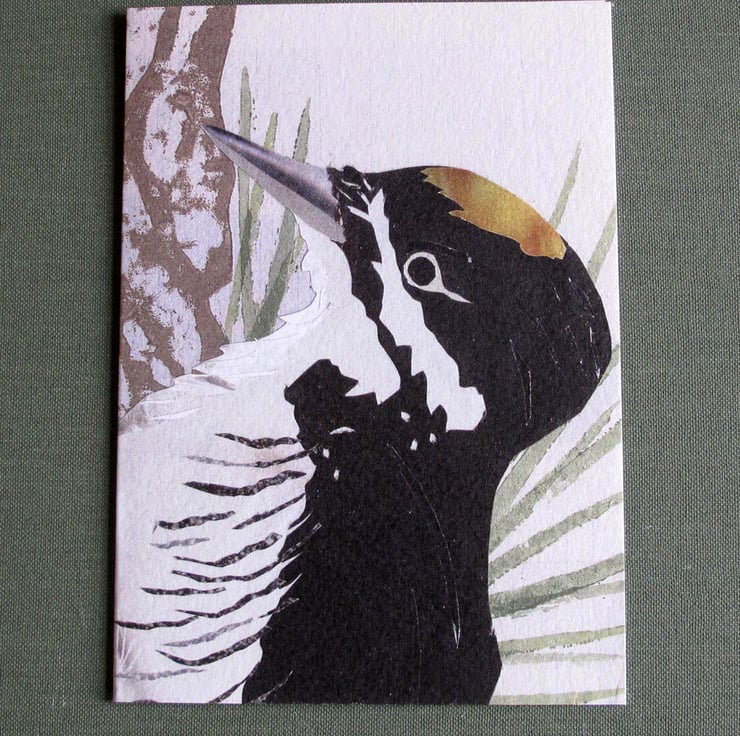 The inspiration for these cards was the bird life in Yellowstone National Park in the USA. The birds were created in collage cut from magazines and mounted onto a hand printed background.