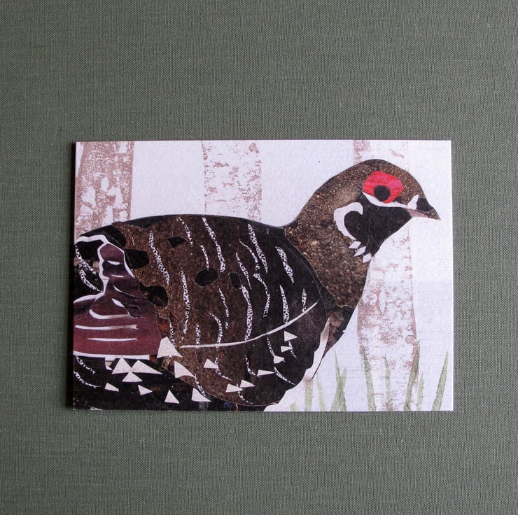 The inspiration for these cards was the bird life in Yellowstone National Park in the USA. The birds were created in collage cut from magazines and mounted onto a hand printed background.
