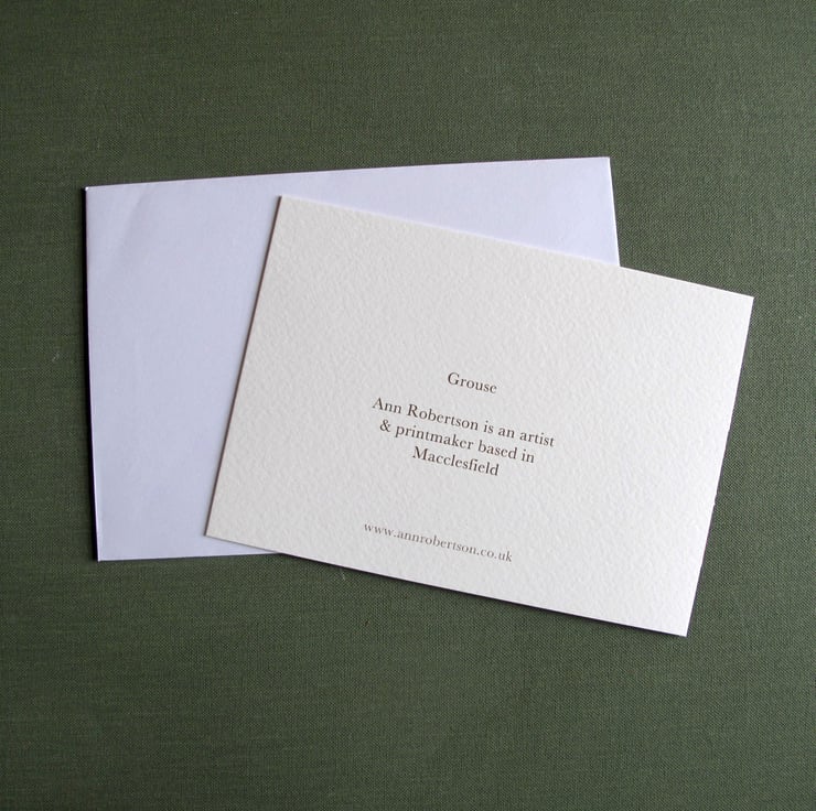 Blank greeting card. Original art work by Ann Robertson. Printed on high quality Tintoretto Gesso paper with a hammered finish. A6 width 14.8 cm height 10.5 cm. Side fold. Plain white envelope.