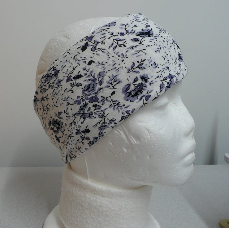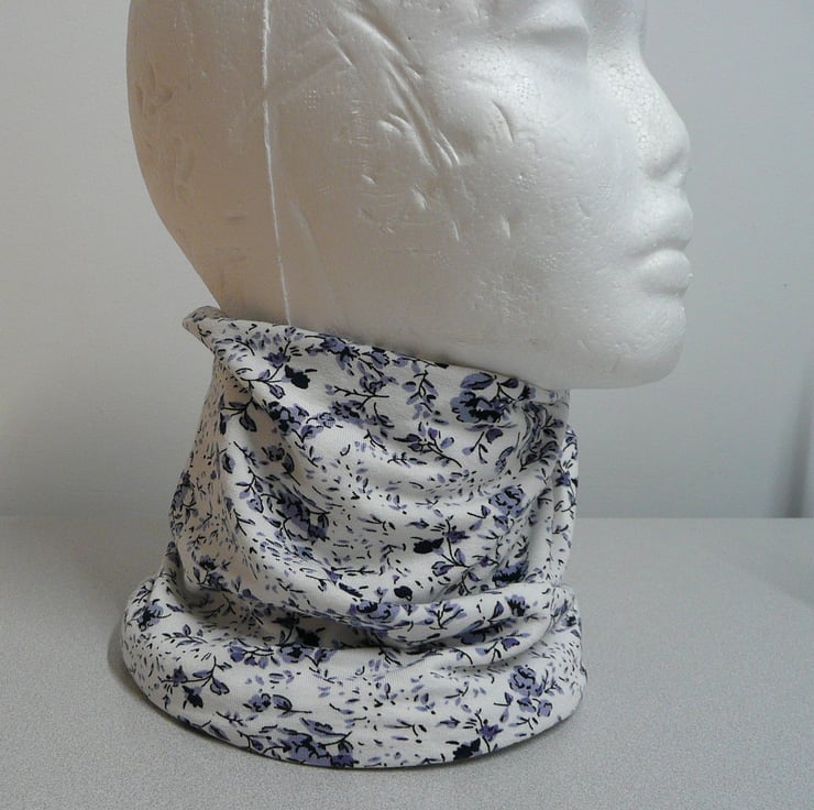 Headband earwarmer snood neck warmer blue white and floral jersey scarf