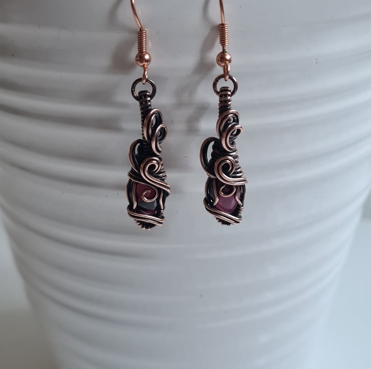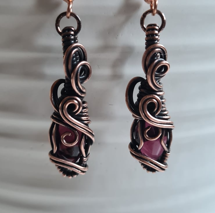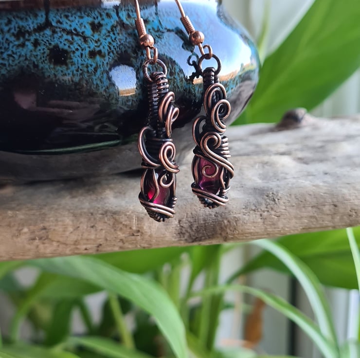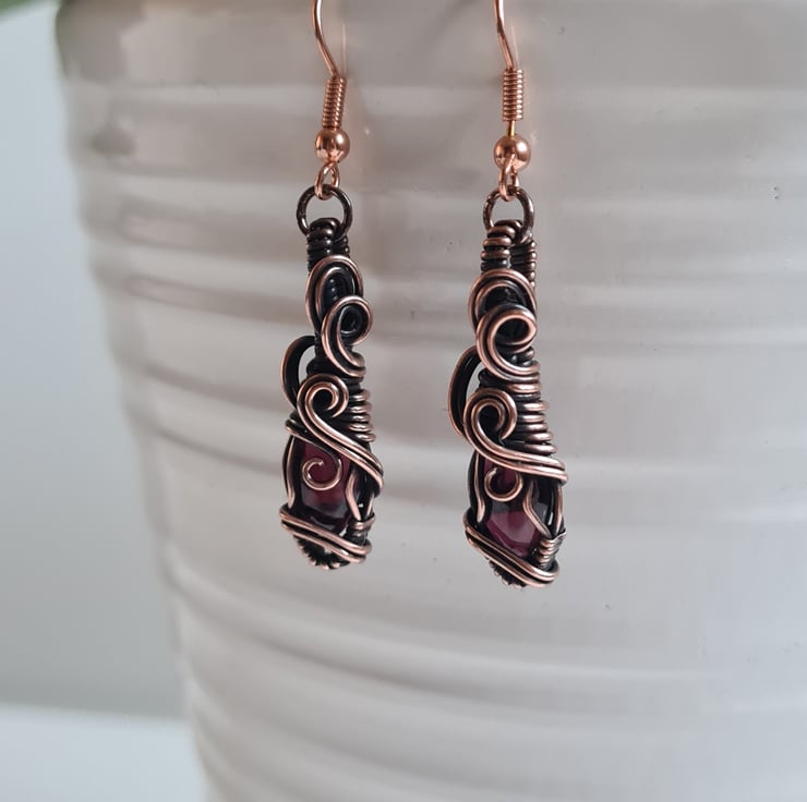 I have handcrafted these beautiful and unique earrings using these lovely Natural Garnet crystals, wrapped with antiqued copper and supplied gift boxed. These lovely earrings are a unique design and Garnet is also the birthstone for January so an ideal birthday gift that cannot be found on the High Street.