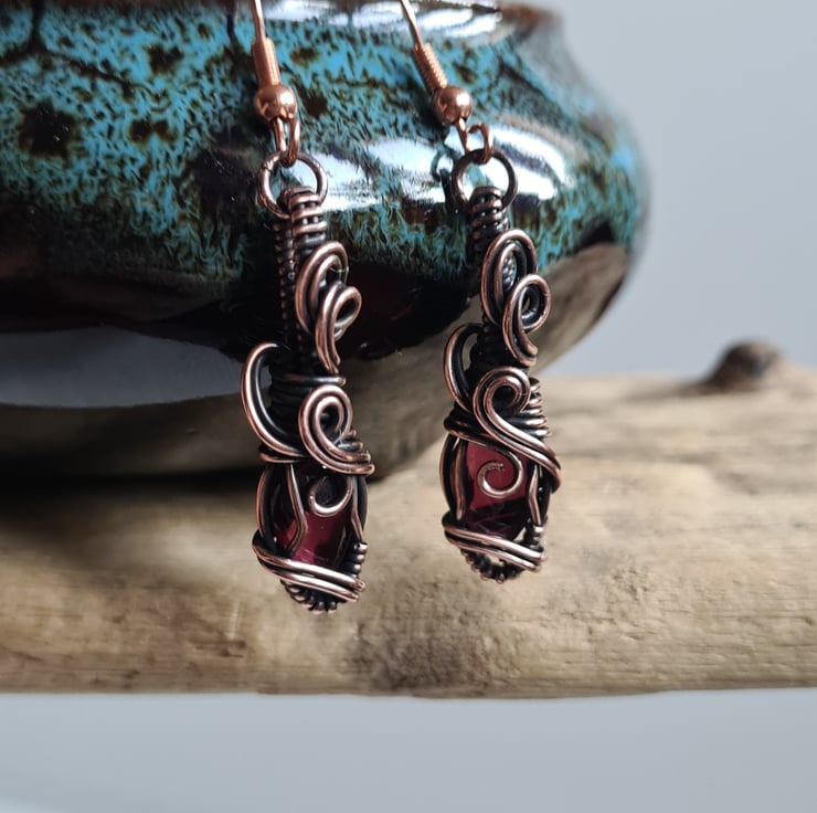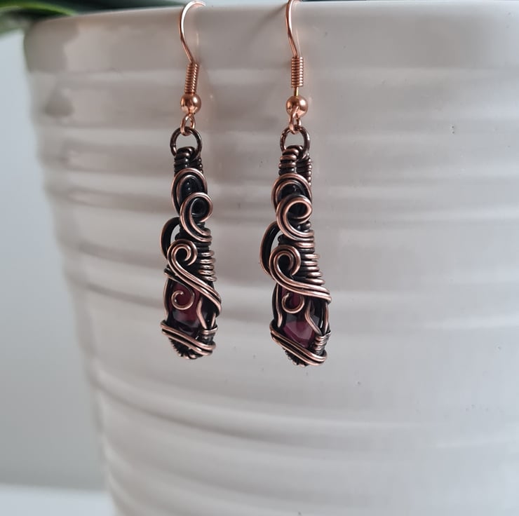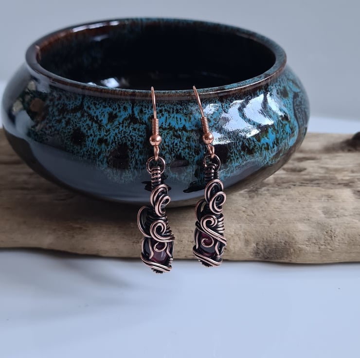 Handmade Natural Garnet & Copper Dangle Wire Wrapped Earrings Gift Jewellery