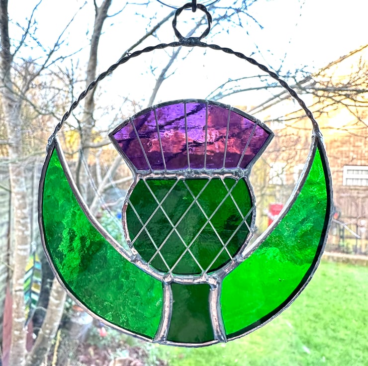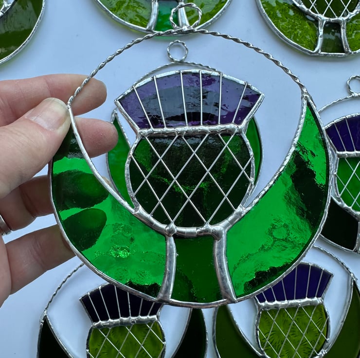 I only have 1 thistle available made in two types of different green glass and lovely purple for the flower head.