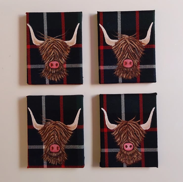 This Highland cow on tartan decoration would make a unique gift for any occasion.