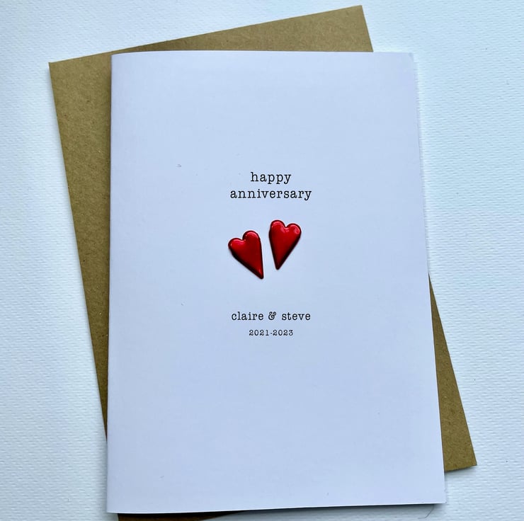 2 Love hearts Anniversary card made to order with your own greeting.