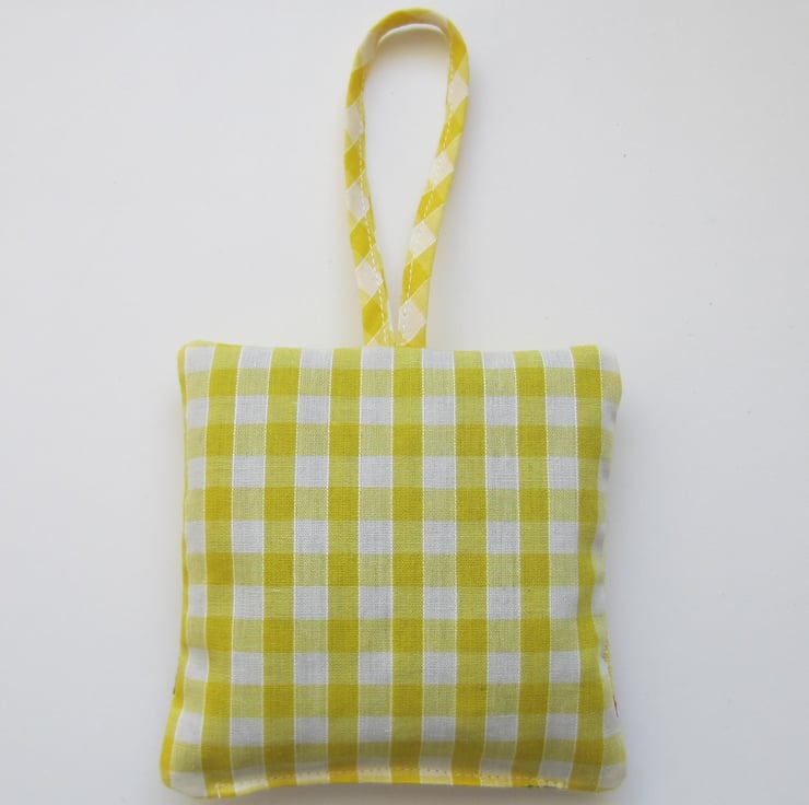 It is filled with Suffolk lavender hand picked and prepared by me and hangs with a matching loop.