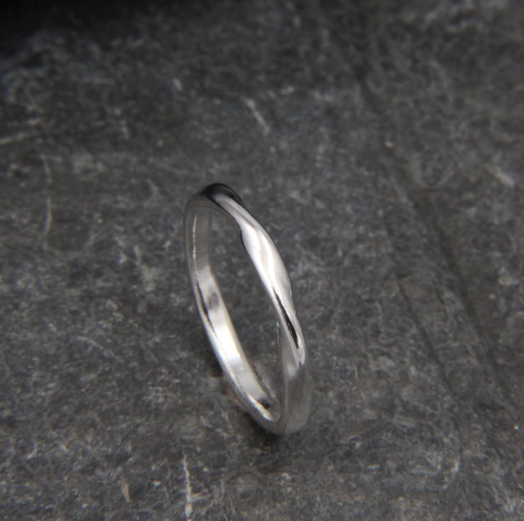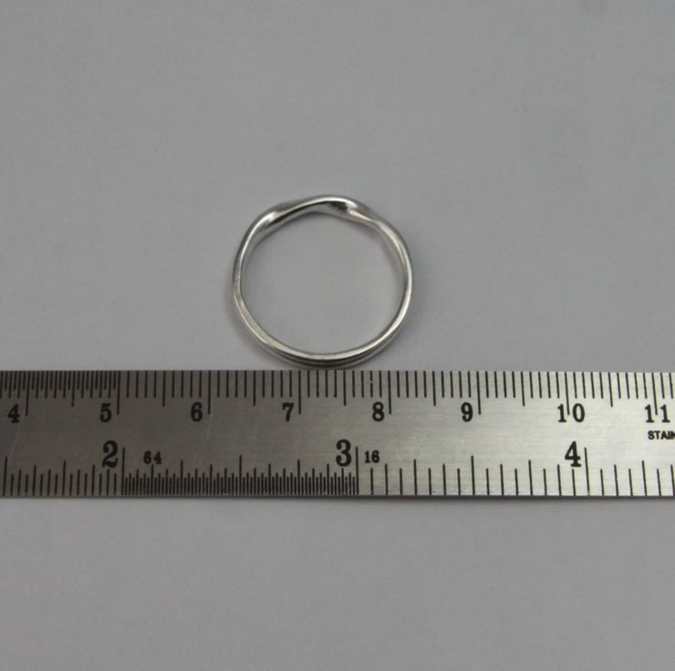 The ring is made from an oval shaped Sterling Silver wire, measuring 2.5 x 1.7mm, that has a delicate twisted detail to depict the rolling waves and shaped in to a circle like the ever rolling cycle of water. This ring will be made in your choice of size, so that it's a perfect fit and will be finished with a polish that reflects the light beautifully!