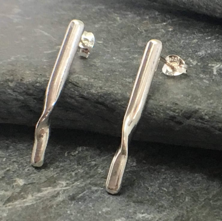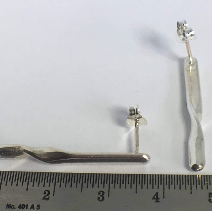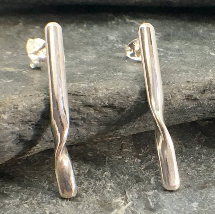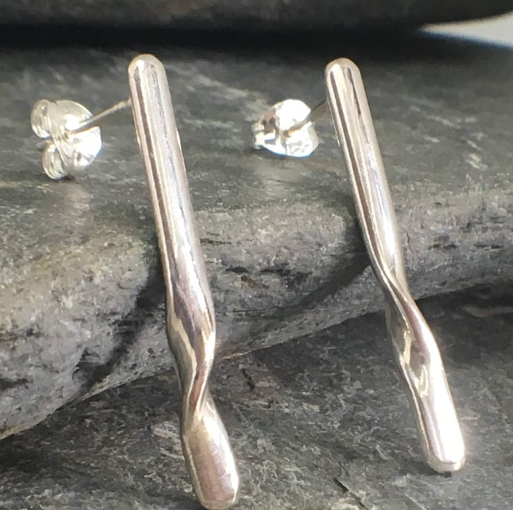 The earrings are made from an oval shaped Sterling Silver wire, measuring 3.2 x 1.9mm, that has been twisted to depict the rolling waves. Each earring is 30mm tall and have a Sterling Silver fixed ear post and butterfly clasp back. The stud drop is designed to hand below the ear lobe. The earrings have a polished finish and reflect the light beautifully!