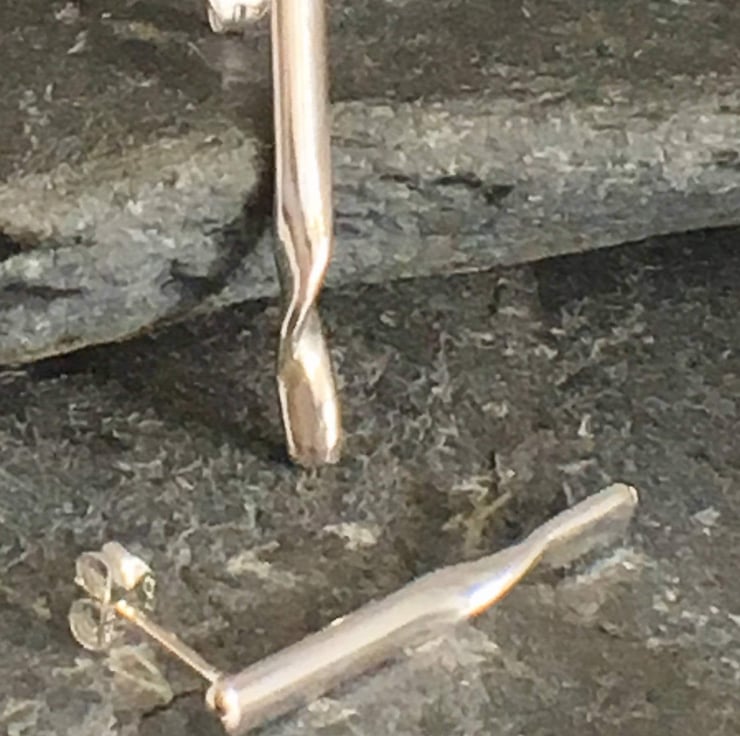 These minimalist drop earrings are handmade. They are inspired by the calm yet powerful rolling waves that visit the Cornish shores and designed during a moment of mindful reflection on the top of a cliff.