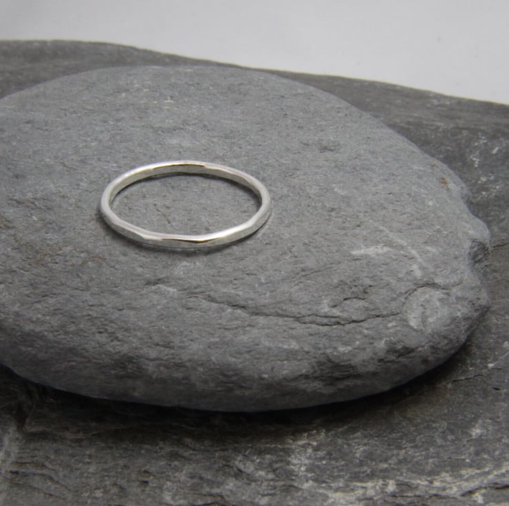 This beautiful ring has a lovely organic feel to it! This has been created using a hammer to create texture all over the ring - applying the texture by hand means that no one ring is the same, all are unique to you!