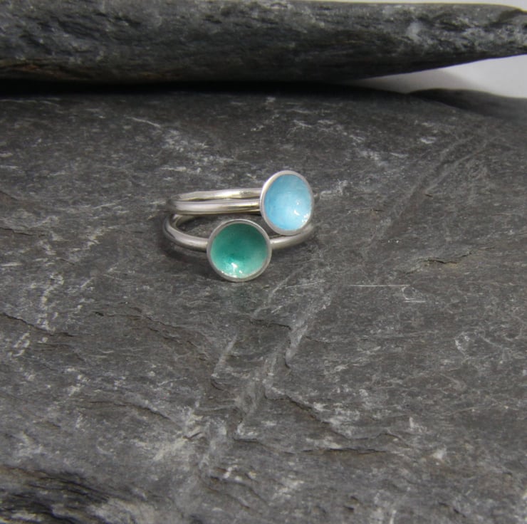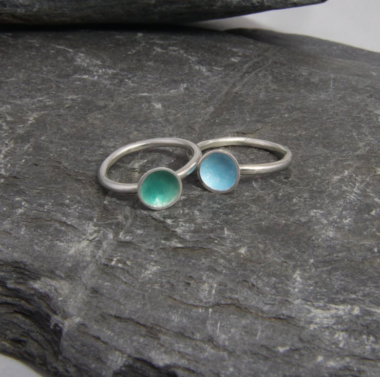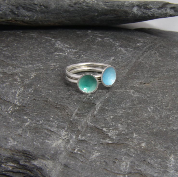 Rockpool Enamel and Sterling Silver Stacking Ring