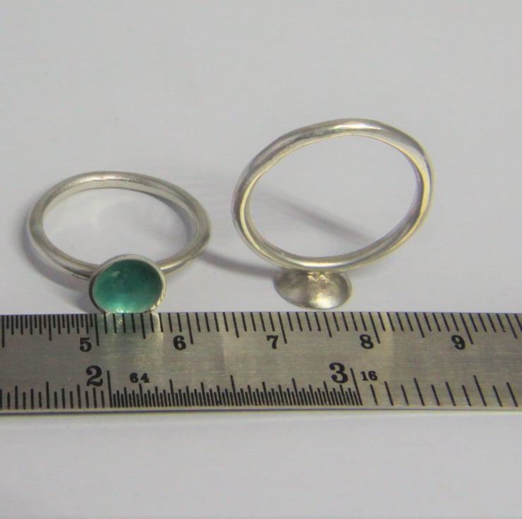 The rock pool is formed from a small disc of Sterling Silver that has been hand shaped in to a dome cup. At its widest point, each dome measures approximately 9mm. The ring shank is made from a round shaped wire, measuring 2mm in diameter.