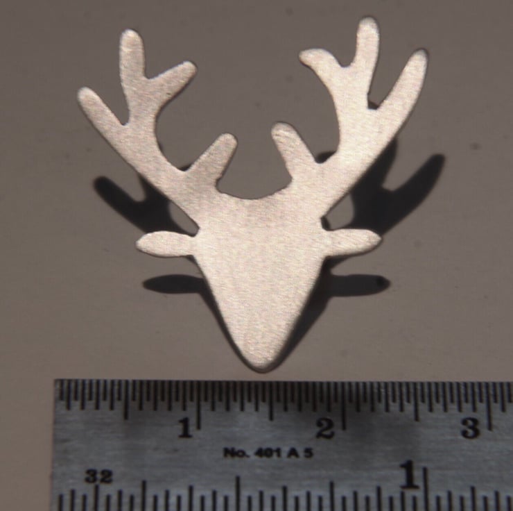 This contemporary stag head lapel pin is hand made from either Sterling Silver or Copper. The silhouette is hand sawn and so each one will vary very slightly making it totally unique to you. It measures approx 25 x 25mm (2.5 x 2.5cm). The pin and clasp back are made from Sterling Silver.