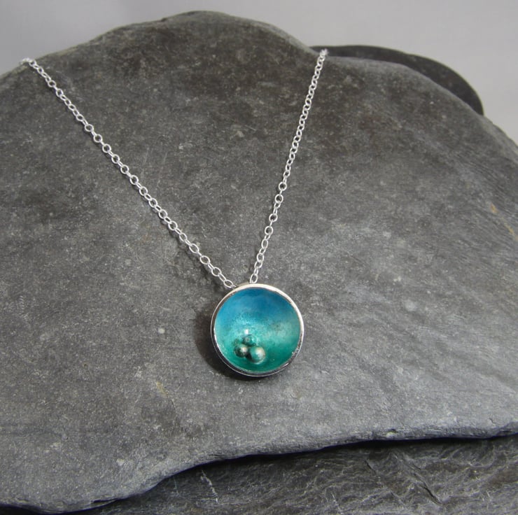 This beautiful pendant is inspired by the ever changing rock pools pools that edge the beach. The colours, the life and the water that flows through them.