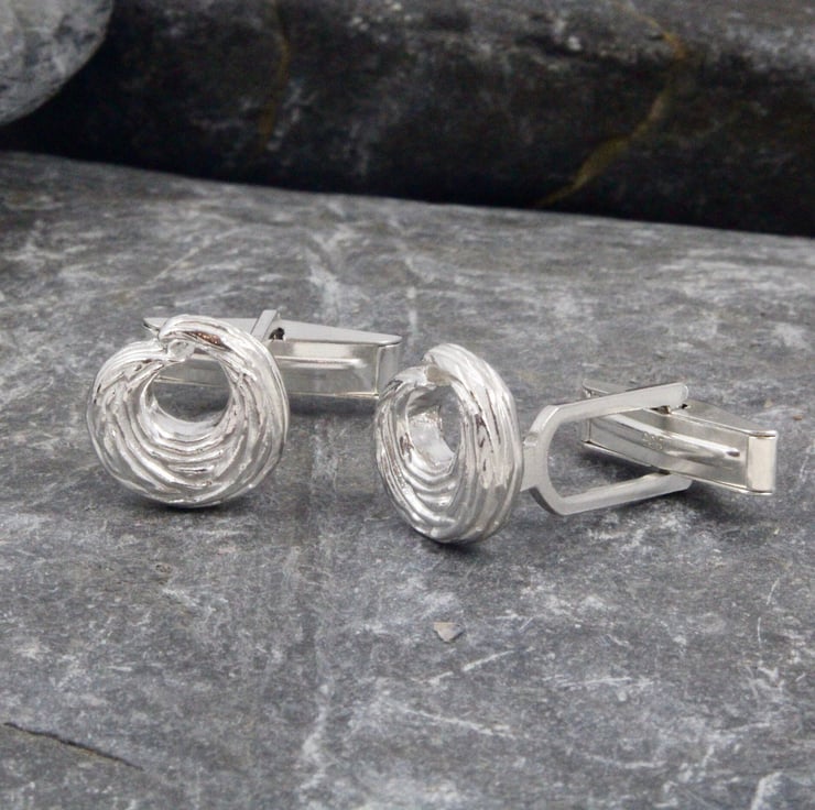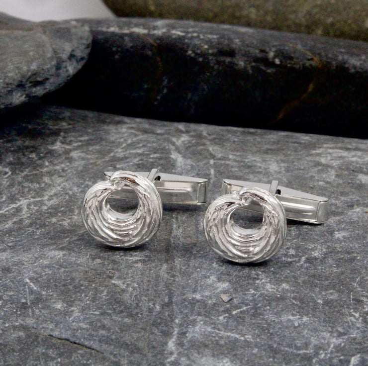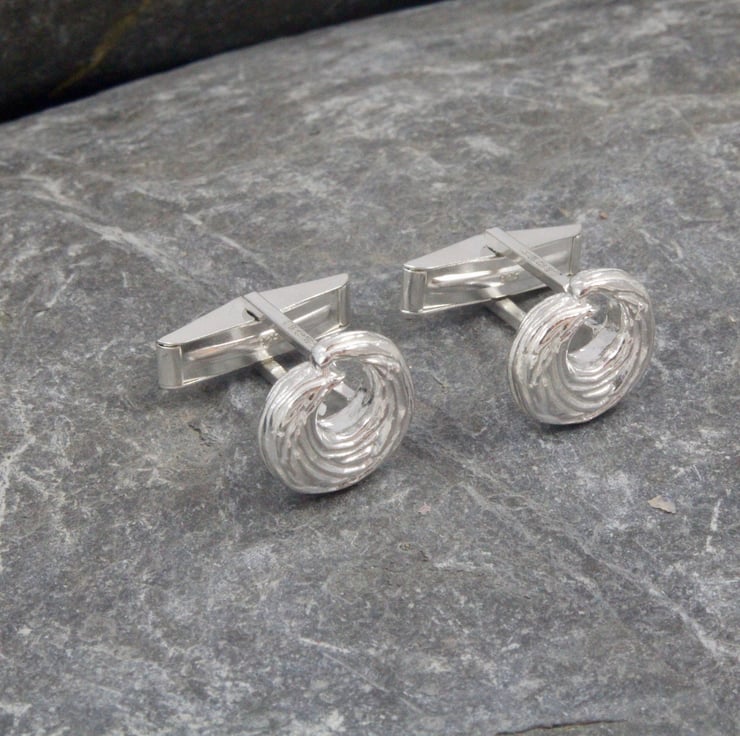 These beautiful, Sterling Silver cufflinks with wave detail were inspired by the ebb and flow of the tide, my love of the water and the restorative power it has.