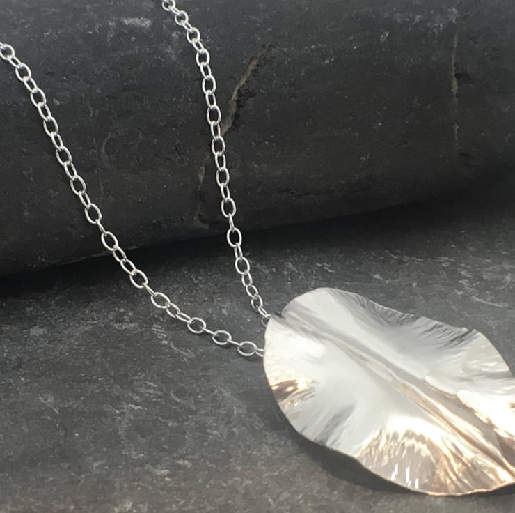 Sterling Silver Fold Formed Leaf Pendant Necklace