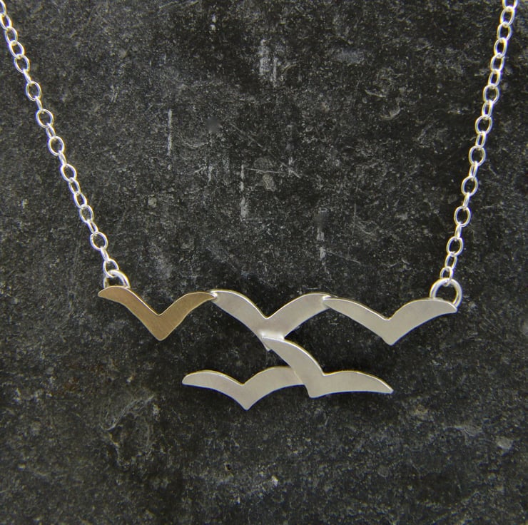 This beautiful necklace was inspired by a favourite cliff top walk near to where lots of seagulls nest.