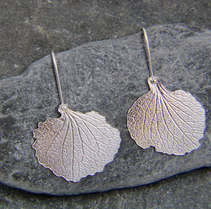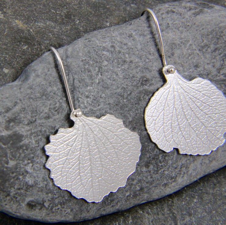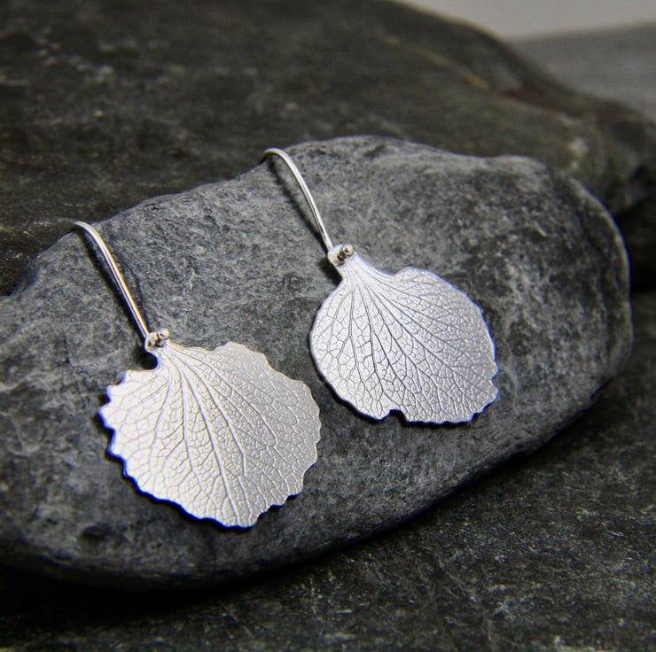 The petal shapes and detail for each earring have been pressed in to Sterling Silver, the outlines then carefully cut round to give a beautiful realism to this unique piece. Each earring is formed of a different petal and so are perfectly different from the other. They are an irregular shape, but each petal at its tallest and widest points measure aprox 22x25mm (2.2 x 2.5 cm). The earrings are presented on an ear-wire, allowing the petals to dangle. The overall drop for this pair of earrings is 39mm (3.9cm). The reverse of the petals is finished with matt texture.