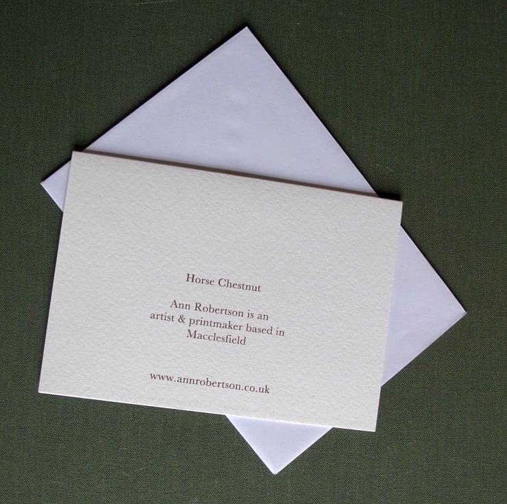 Blank greeting card. Original art work by Ann Robertson. Printed on high quality Tintoretto Gesso paper with a hammered finish. A6 width 14.8 cm height 10.5 cm. Top fold. Plain white envelope.