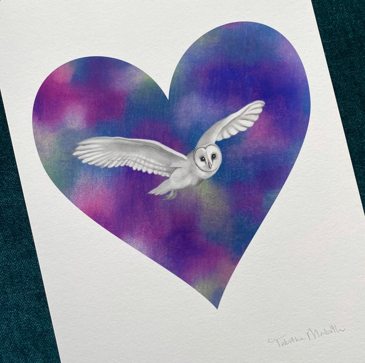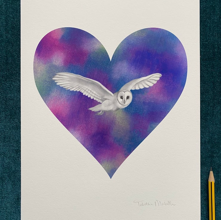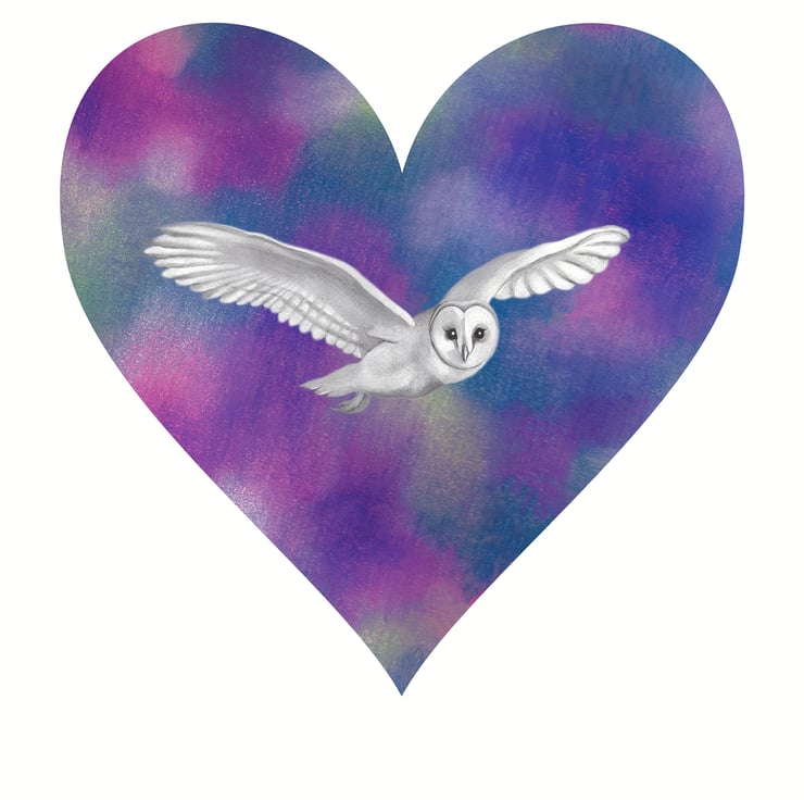I created this heart shaped flying owl illustration using pencils, coloured pencils, chalk pastels and a smidgen of digital work to bring it all together!