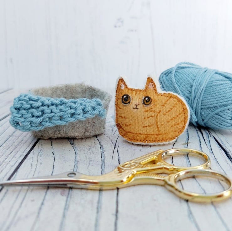 Your mini cat will be painted onto calico and then sewn onto two layers of thick felt and gently filled, allowing it to stand independently. Either sitting or laying down (a sitting cat measures approx 5cm tall) your mini cat can sit at your desk at work or perch on a shelf at home.