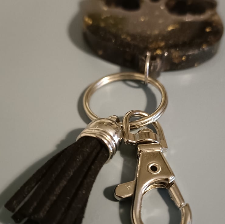 Epoxy resin keyring, black and gold, perfect for keys, bag charms.