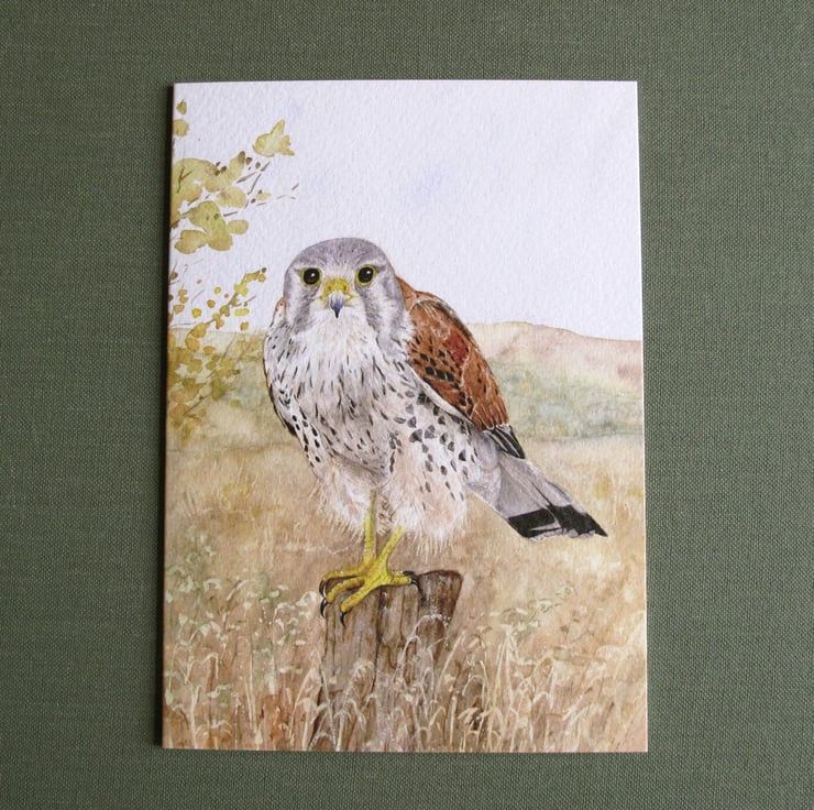 I was commissioned to paint a kestrel for a friend. He is up on the peak district watching us, just before he flies off.