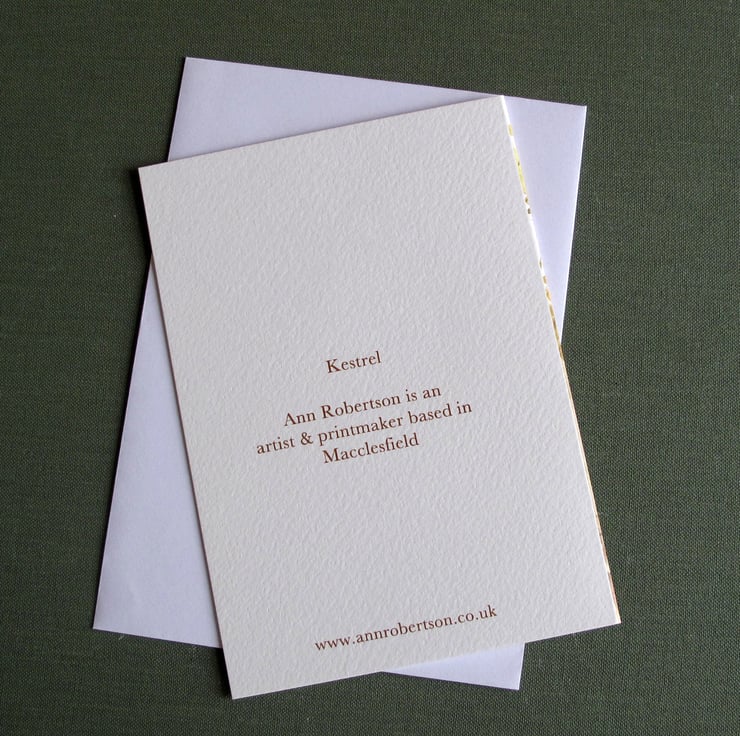 Blank greeting card. Original art work by Ann Robertson. Printed on high quality Tintoretto Gesso paper with a hammered finish. A6 width 10.5 cm height 14.8 cm. Side fold. Plain white envelope.
