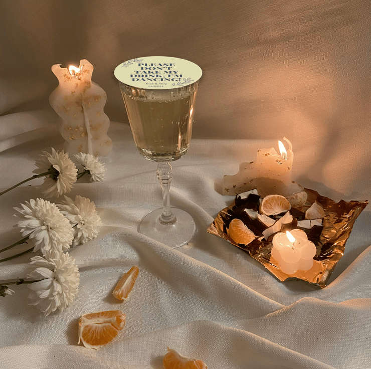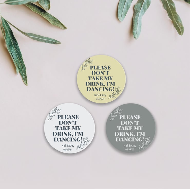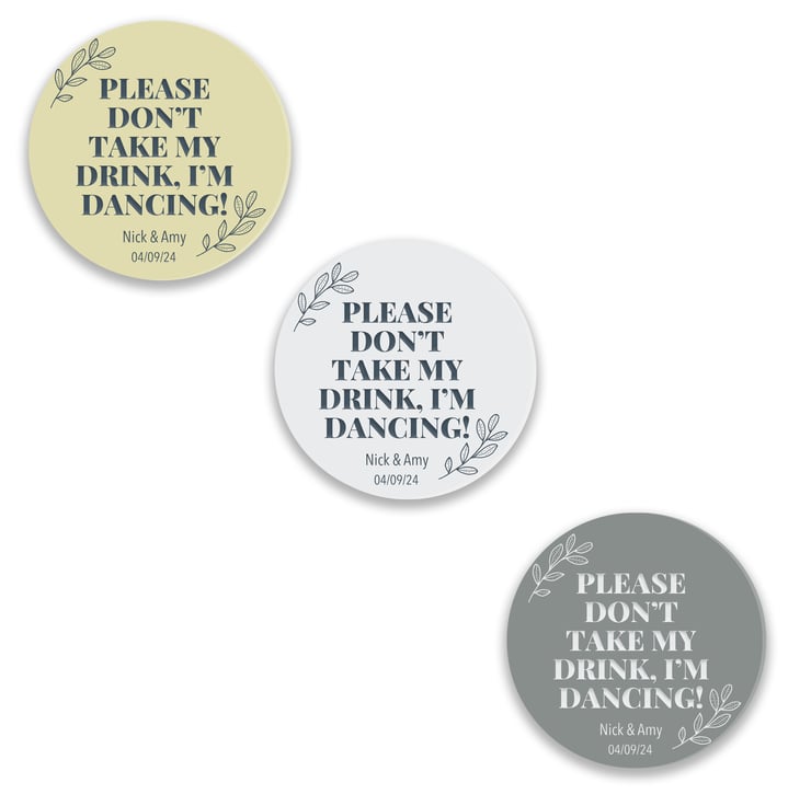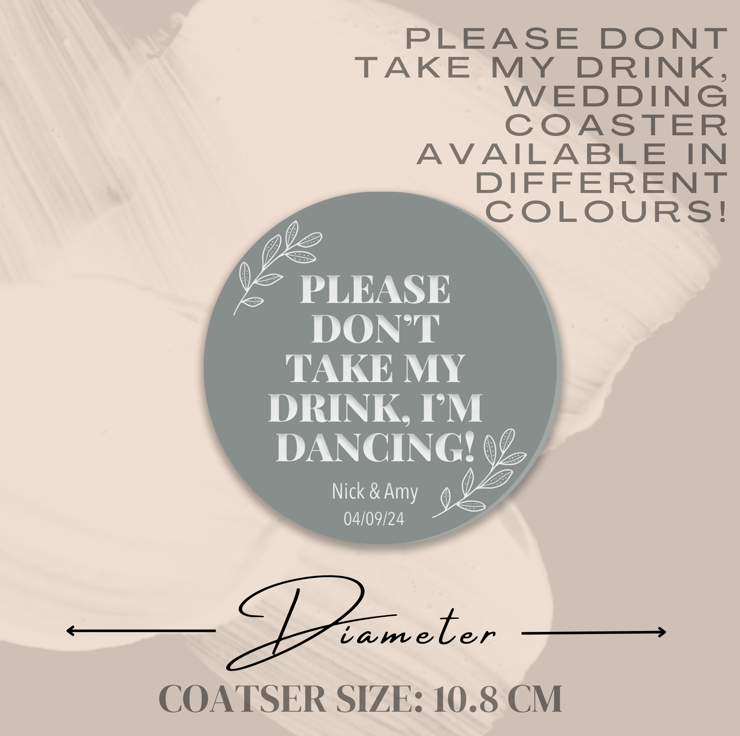 Celebrate your special day with a touch of humour and style with our custom wedding coasters featuring the playful quote: "Please don't take my drink; I'm dancing!" These unique coasters not only serve as functional drink protectors but also add a dash of personality to your wedding festivities.
