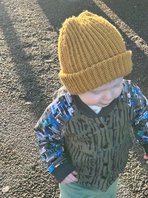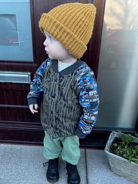 Comfy stretchy cotton jersey fabrics used in this Reversible Bomber Jacket (so 2 layers of jersey fabric)