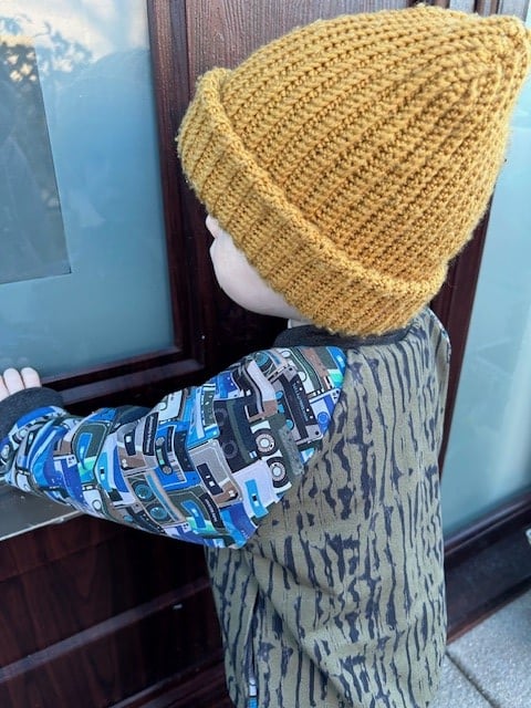 Our cute wee model is 20 months old and is wearing our age 2 years jacket.