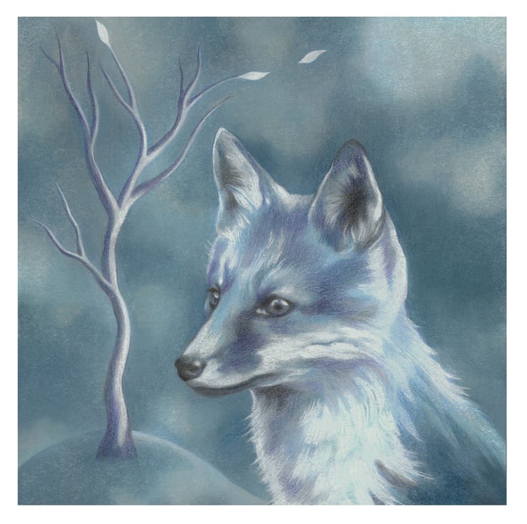 "Twilight Wandering". This contemplative fox is one in a series of soft and atmospheric, ethereal Animal pieces I have created, using chalk pastel and pencil .