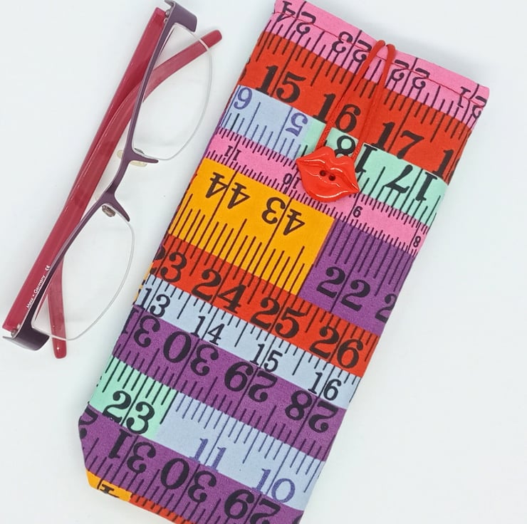 Soft squishy Glasses case in cotton measuring 18.5cm x 8cm.