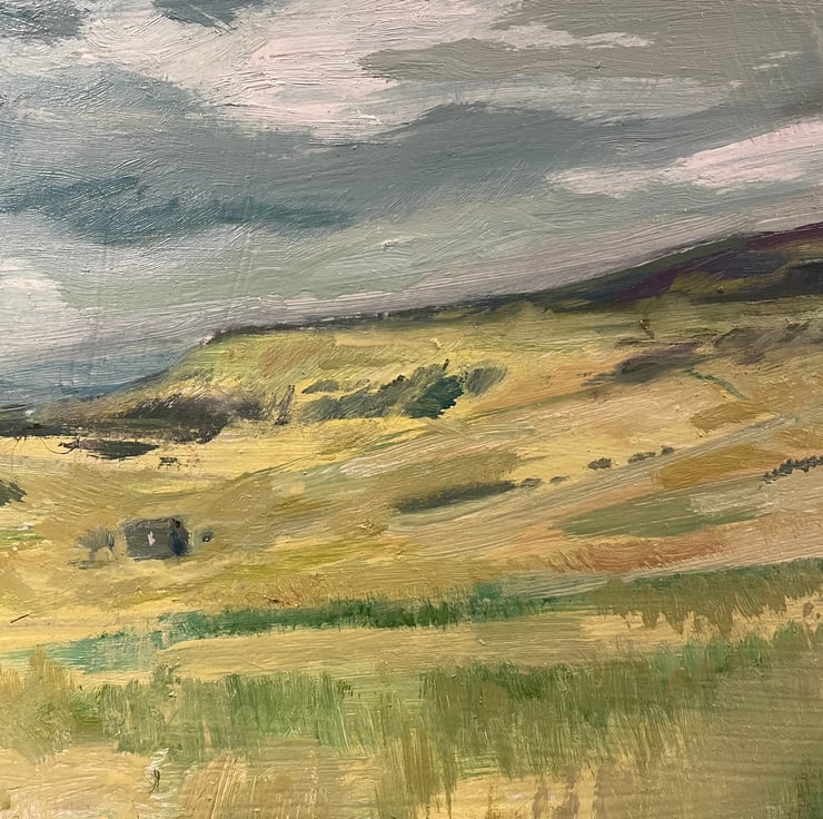 This is the view from the fells up behind where I live. It sits in the RSPB nature reserve and looks out over the Solway. There is an abandoned on farm house down in the dip where the path eventually leads, a wild windswept place!