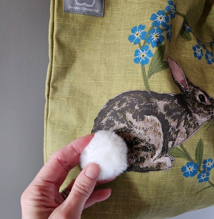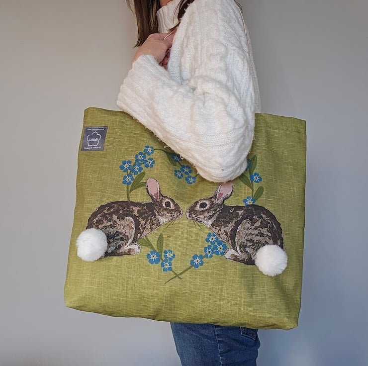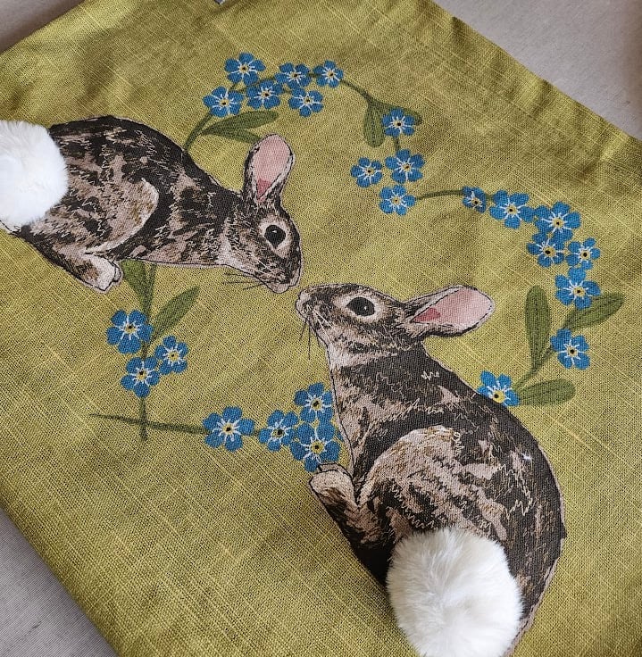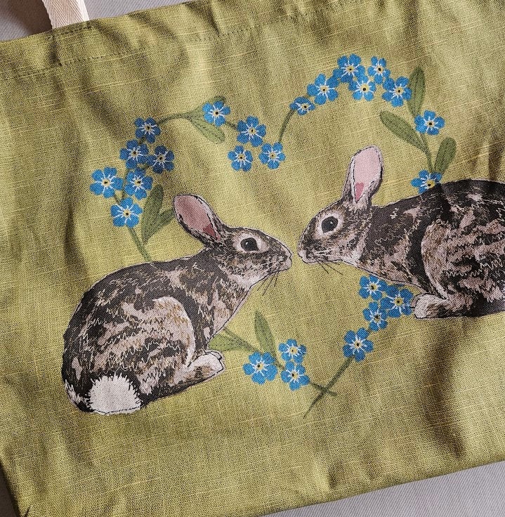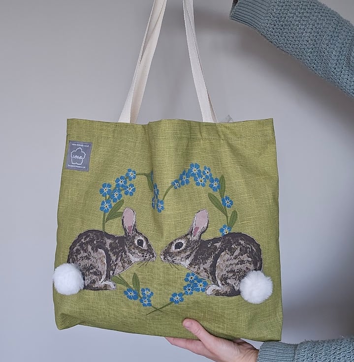 The printed fabric features my 'Rabbits & Forget-me-not heart' design.