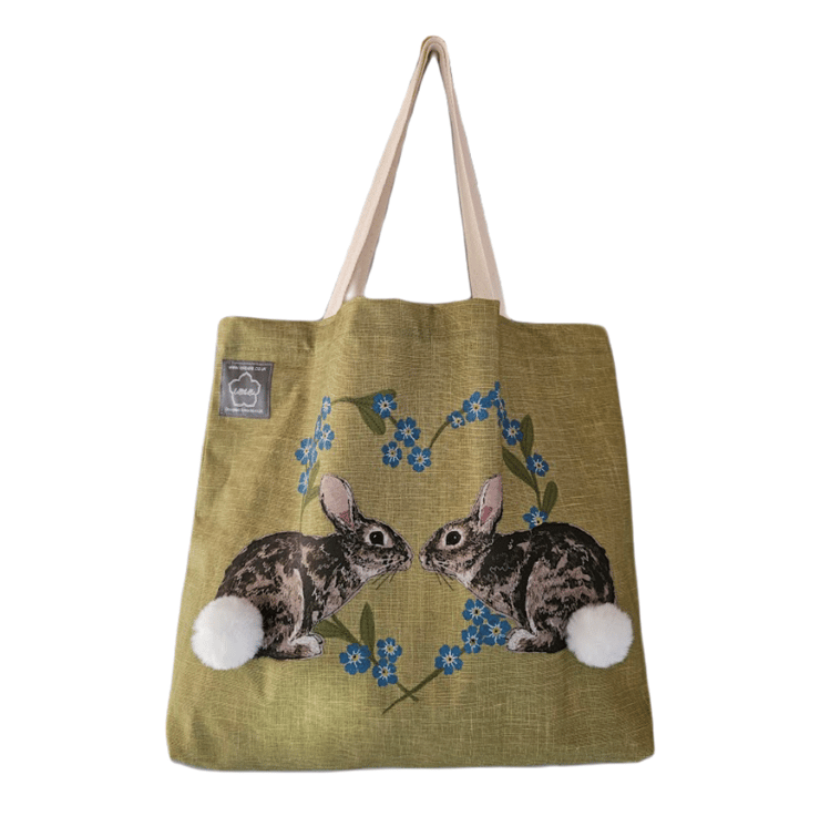Rabbit printed cotton gusseted tote bag, organic cotton, reusable shopping bag