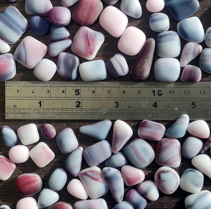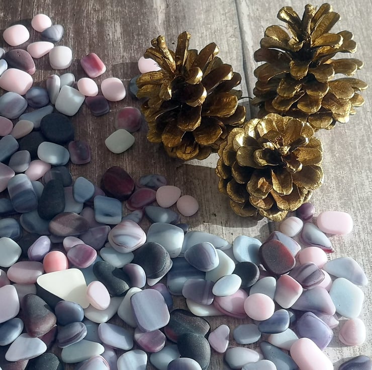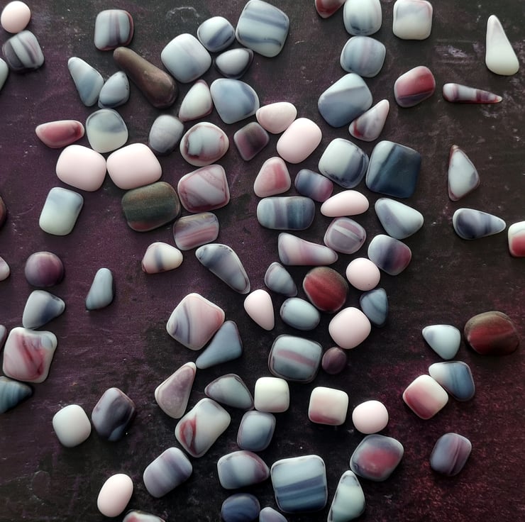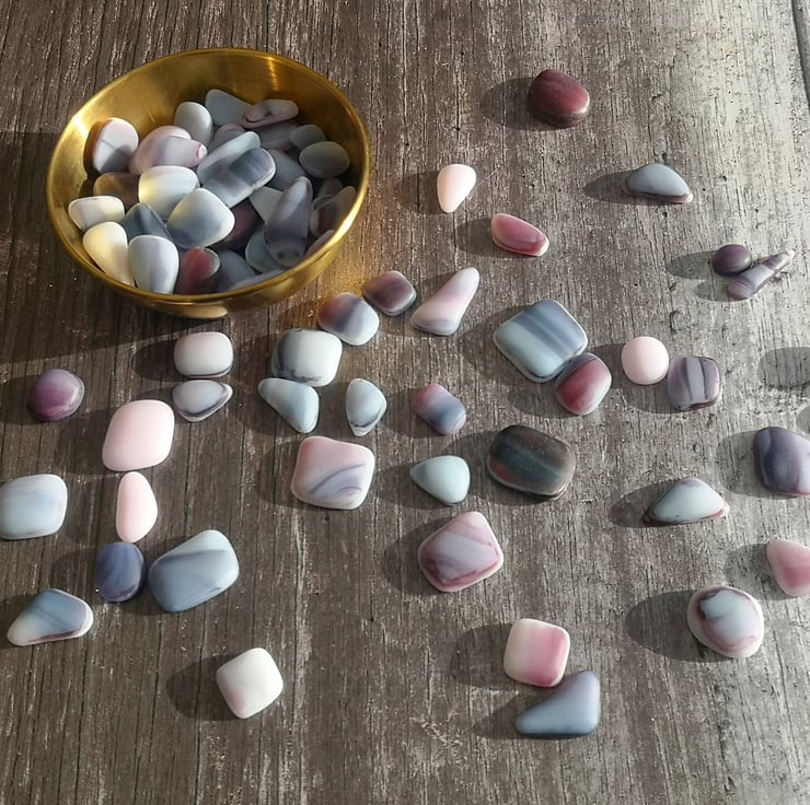 Mixed bags of tumbled glass. Different sizes and shapes. Most pieces measure between 1 - 2.5cm. Ready to be transformed into your own art projects!