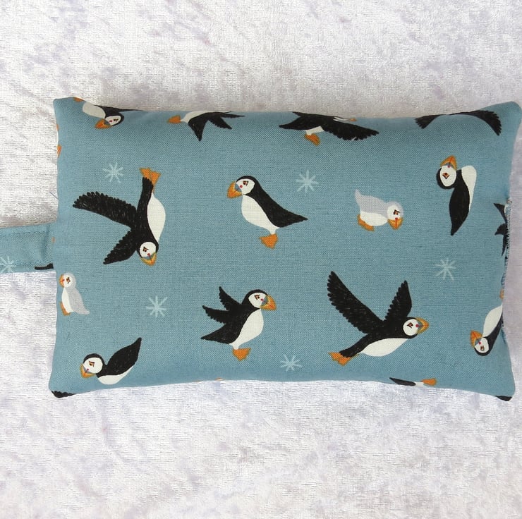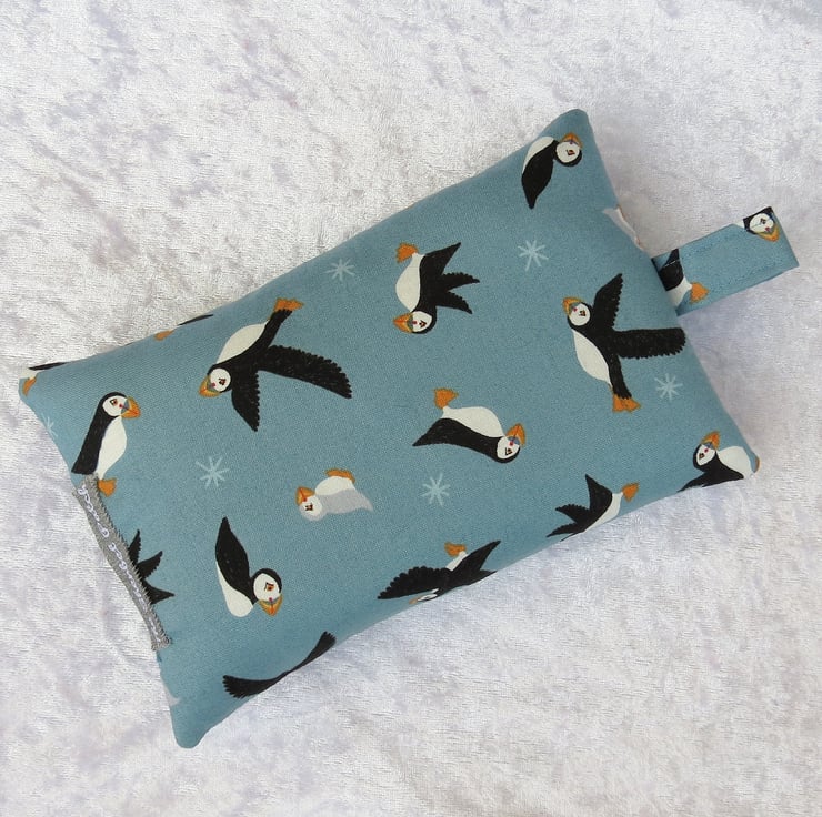 This wrist rest is made from a Lewis and Irene quilting cotton, with a puffin design.