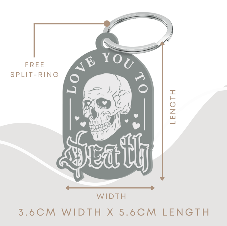 Embrace the darker side of love with our "Love You to Death" Keyring – the perfect blend of humour and affection for Valentine's Day. This unique keyring is an ideal gift for those who appreciate a touch of dark humour and want to express their love in a one-of-a-kind way.