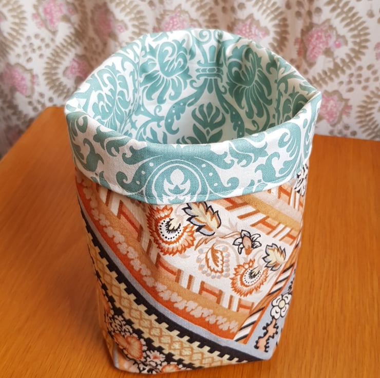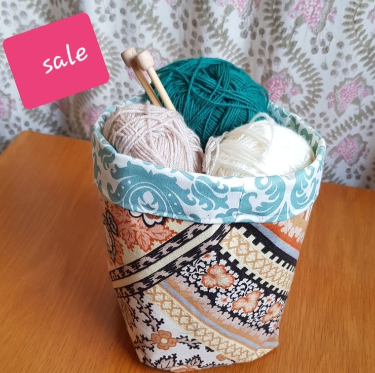 Wanting to have a spring clean? This storage "basket" has a multitude of uses. I like to use mine for yarns. It looks with a house plant in it too. The fabric is a furnishing weight print which I have interlined to give some rigidity and the basket is lined with a coordinating craft weight cotton.