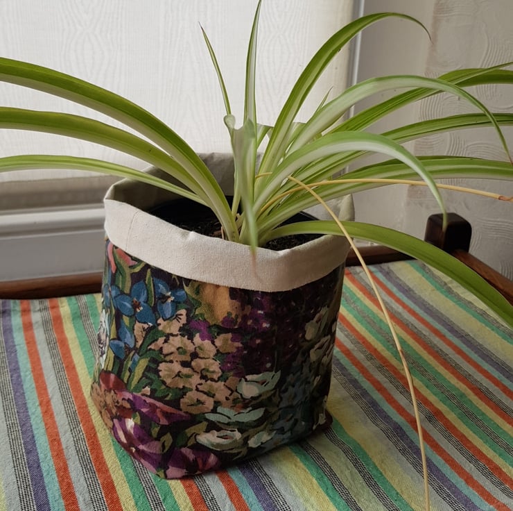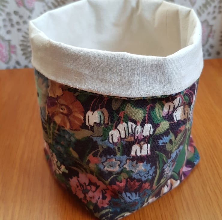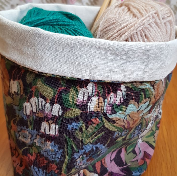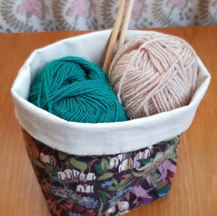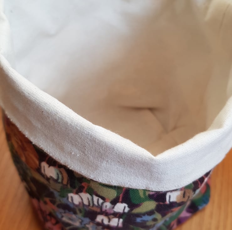 Wanting to have a spring clean? This storage "basket" has a multitude of uses. I like to use mine for yarns. It looks great with a house plant in it. The fabric is a furnishing weight print which I have interfaced to give some rigidity and the basket is lined with cotton calico.
