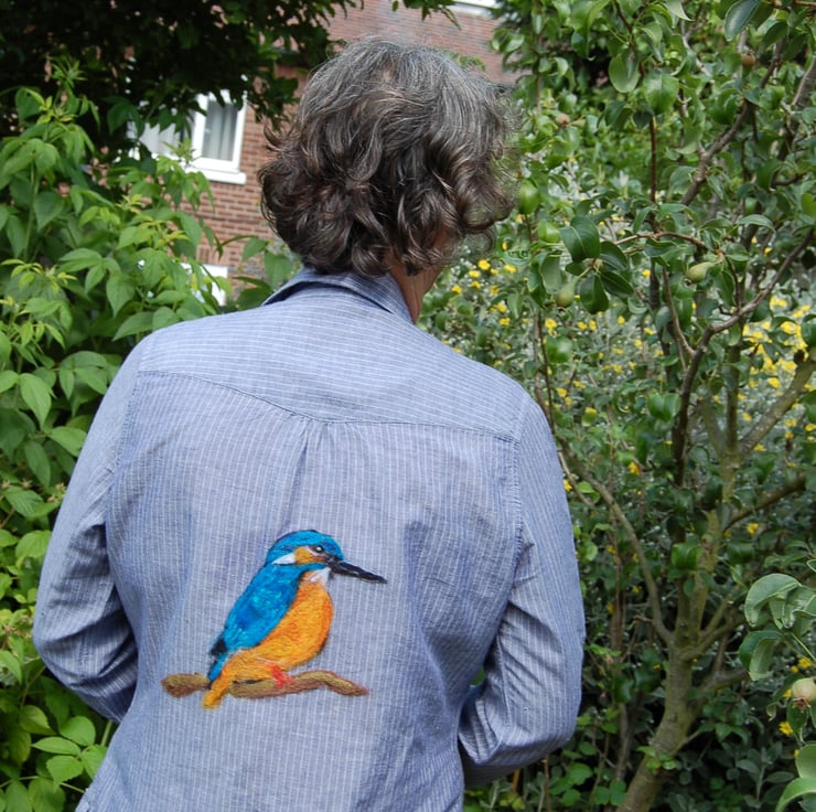 The kingfisher has been created by me in free hand using wool fibres and a sharp needle. How lovely to be able to wear a piece of art work. I'm sure this will bring you loads of wonderful comments.