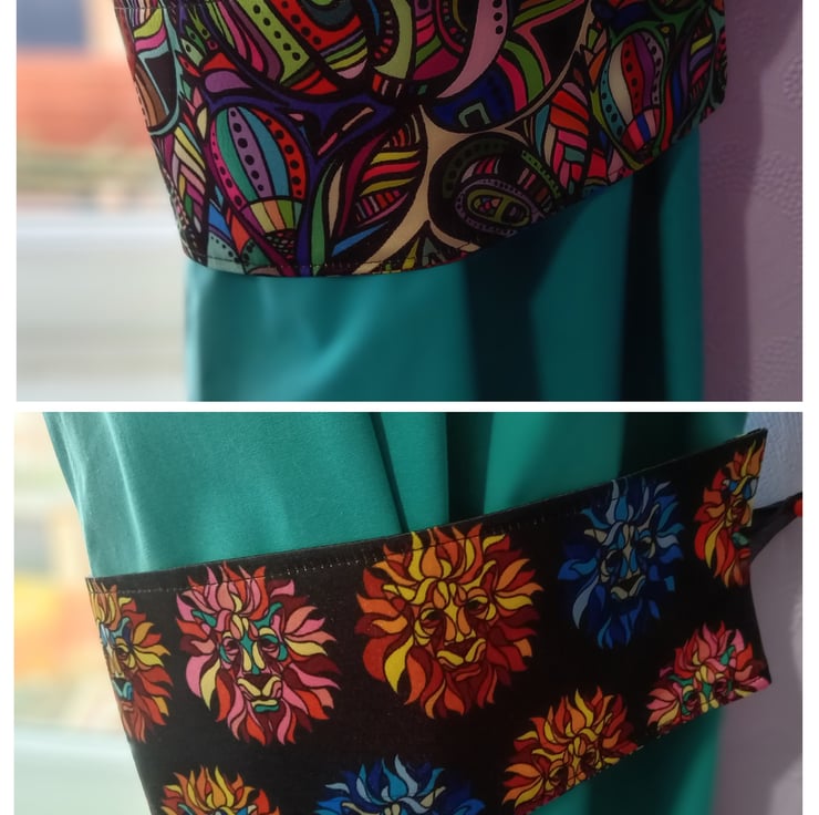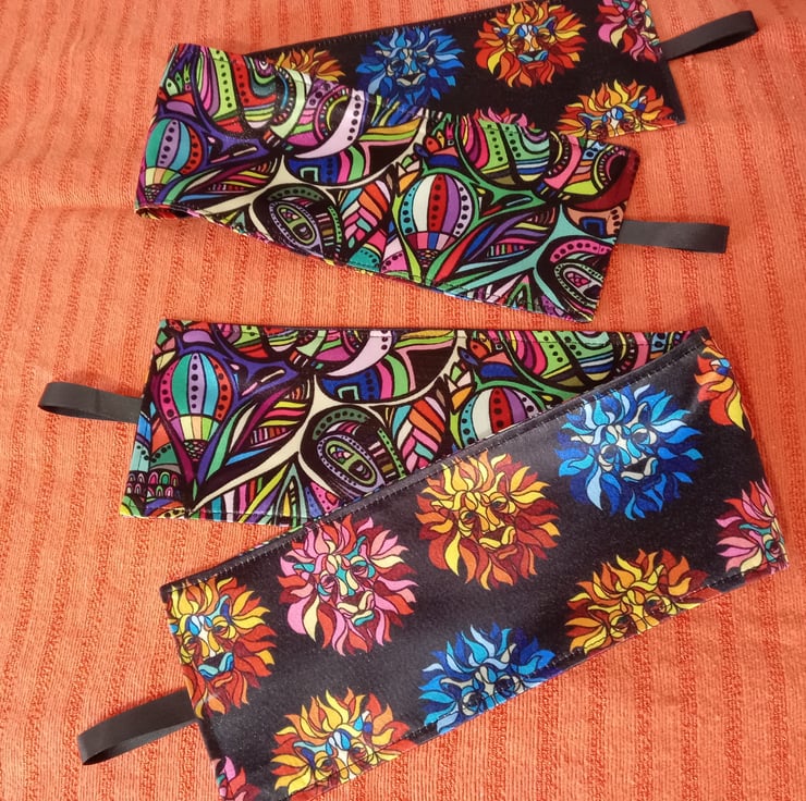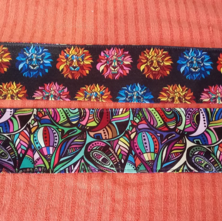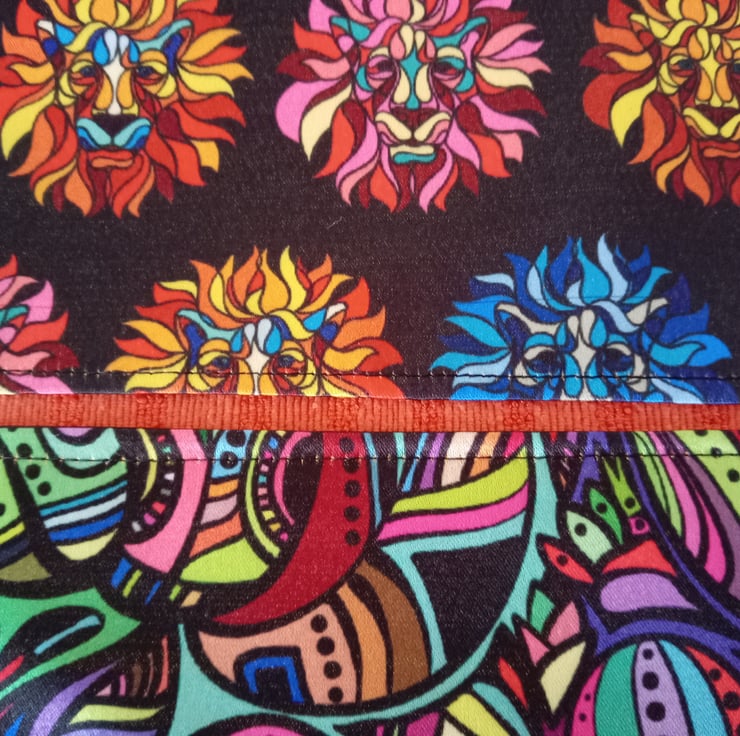 One side has a colourful lion's head design and the other is abstract balloon pattern.