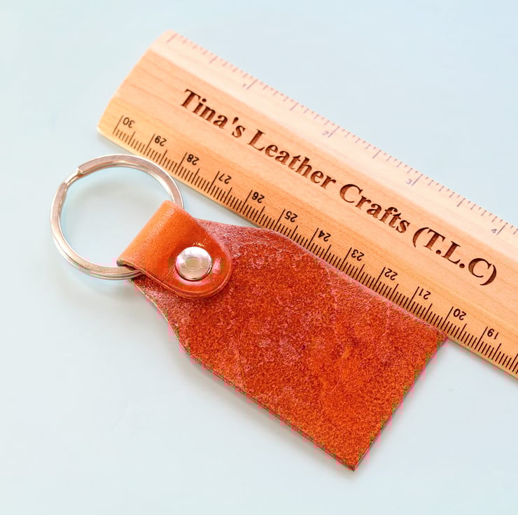 The leather key fob will measure approximately 7.7 cm long and be around 3.9 cm wide. The overall length of the Initials leather keyring will be approximately 10.2 cm long including the ring. Exact shade of colour may vary as individually made by hand.